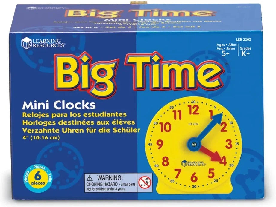 Set of 6: This pack includes six Geared Mini Clocks, providing ample resources for group activities and individual learning sessions.
