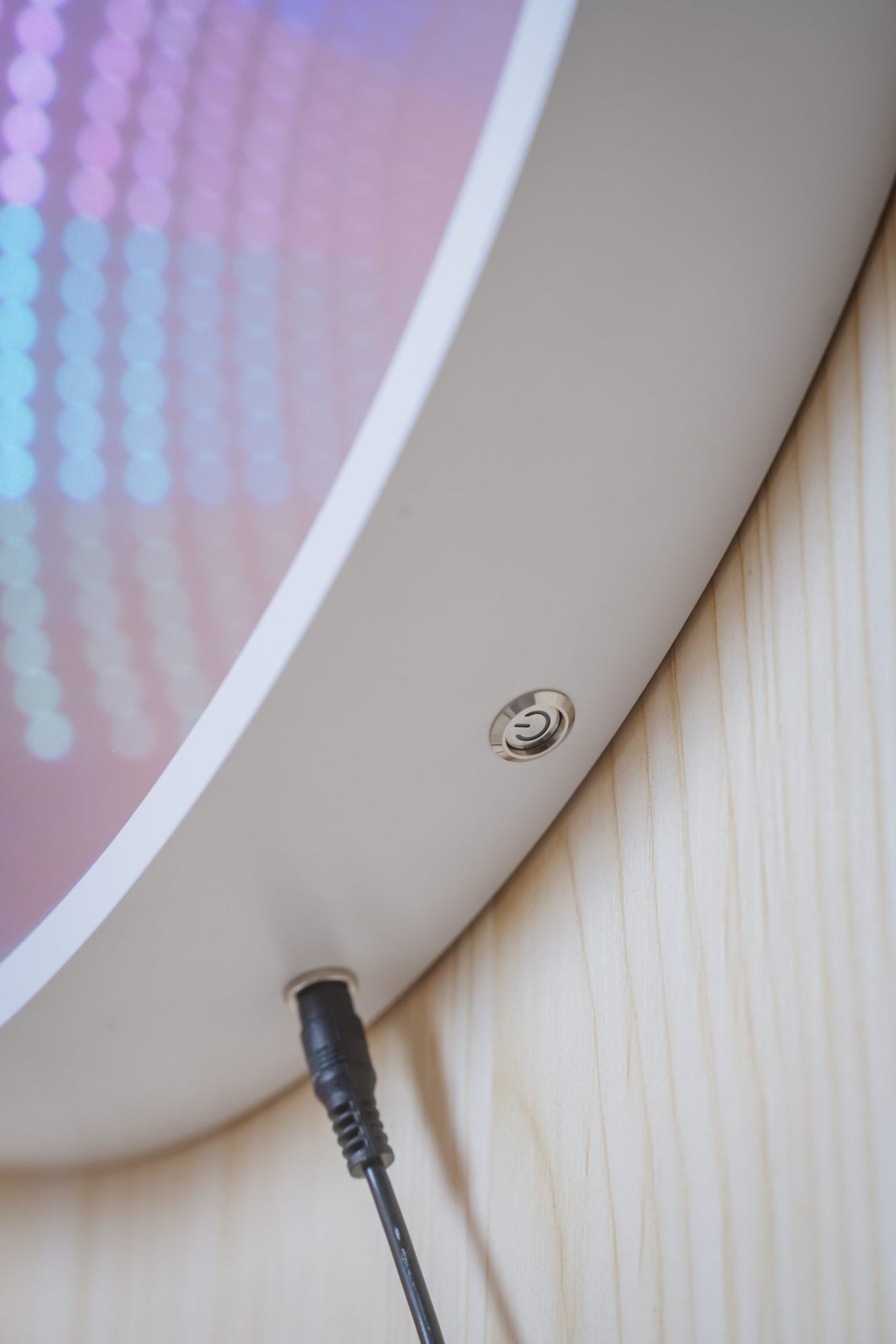 The large round mirror, approximately 60cm in diameter, serves as a focal point, transforming any space into a captivating spectacle of light and colour. With rechargeable buttons, simply tap to change colours or light sequences, or leave them untouched to enjoy the ever-changing display of vibrant hues and patterns.
