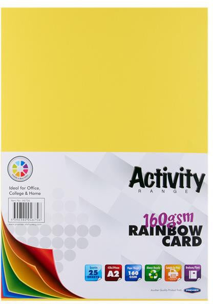 Premier Activity Card is a great addition to your art and craft collection. Supplied in a pack of 25 Sheets it is sturdy, vivid and ultra smooth. Premier Activity Card is a high quality 160gsm A2 double sided coloured card. Popular for the whole family, for drawing, printing, cardmaking, e.g. for collages, photo albums, paper figures and much more...