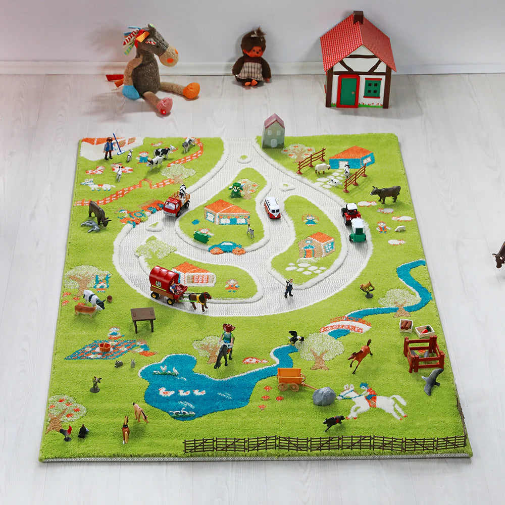 Children will love exploring the soft, raised surfaces and detailed landscapes as they set the scene for small-world play. Whether they’re tending to animals on The Farm, navigating roads in the Mini City, or setting up home in the Twin Houses, each rug invites open-ended exploration and imaginative learning. Just add your favourite toys (not included) and let the adventures begin!