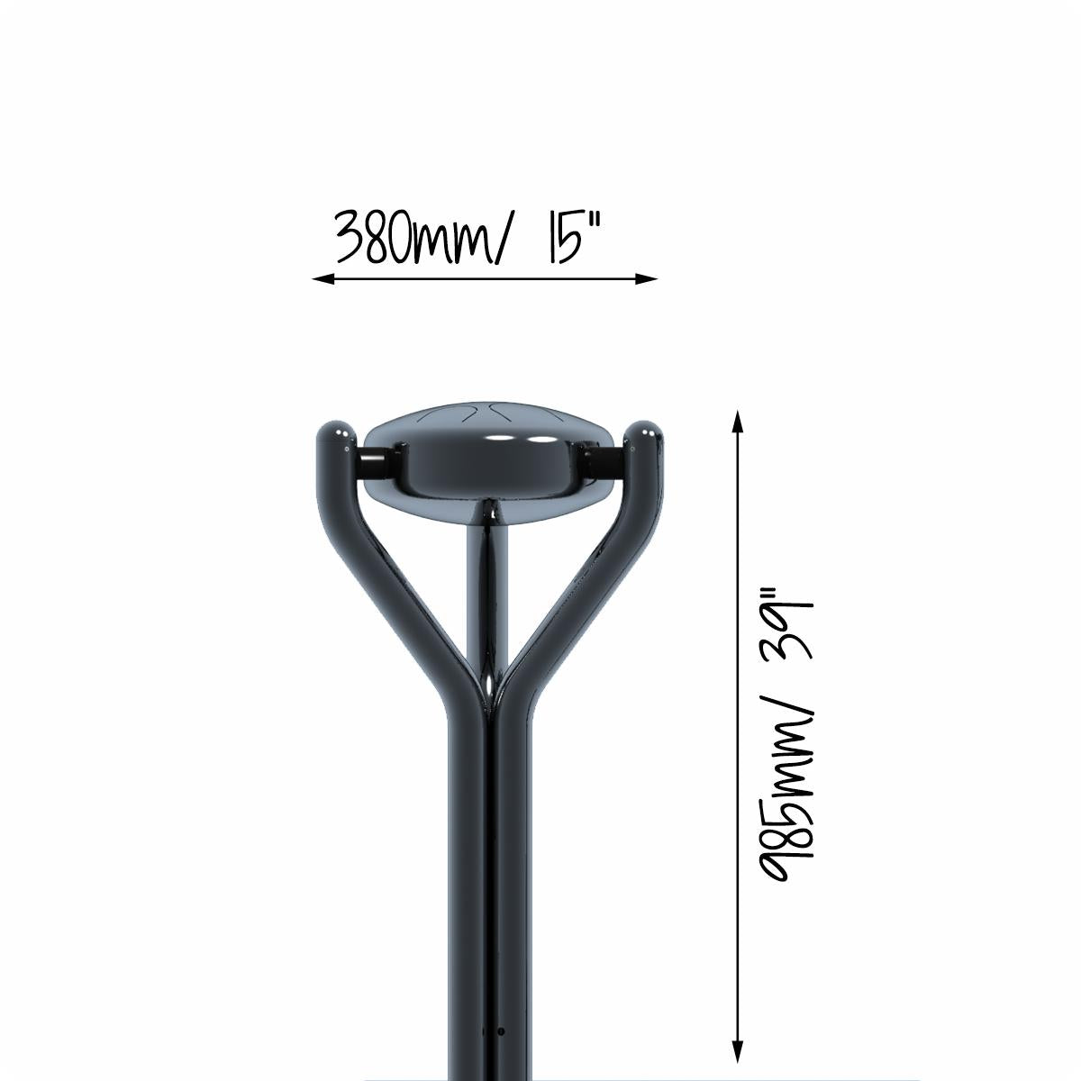 Babel Drums are circular stainless-steel tongue drums designed for permanent outdoor installation. They come in two sizes:
