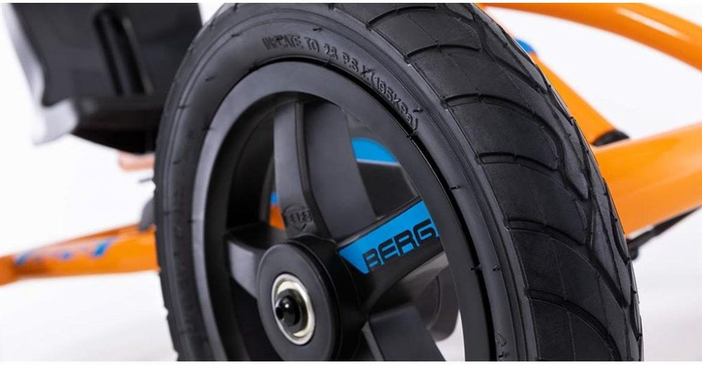 Get ready for action with the BERG Buddy B Orange Go Kart! This sleek, vibrant go-kart is perfect for adventurous youngsters aged 3 and up. Designed for speed, safety, and fun, it features 4 sturdy pneumatic tyres that grip the ground while providing a smooth ride. The swing axle ensures maximum stability, making it a joy to manoeuvre around tight corners and bumps. With its bold orange design, your child will feel like a real racer as they zip around the garden or park.