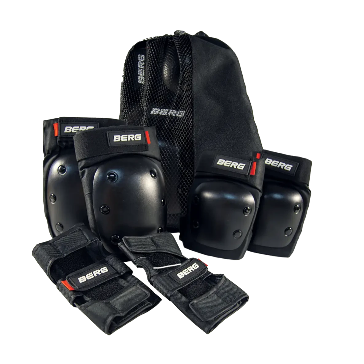 Time for action, but always with safety first! The BERG Protection Set ensures your child is well-protected during their adventures. Designed to cushion and shield against bumps and falls, this comprehensive set includes wrist guards, elbow pads, knee pads, and a convenient storage bag.