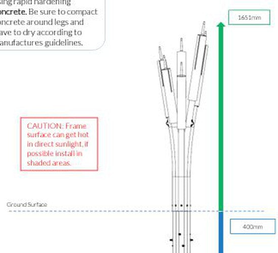 Surface Fix Installation: Ideal for situations where ground digging is not possible (e.g., concrete or expensive surfacing). Surface plates are provided for easy fixing or drilling in the desired location using recommended suitable ground anchors (bolts or fixings not supplied) for a quick solution.