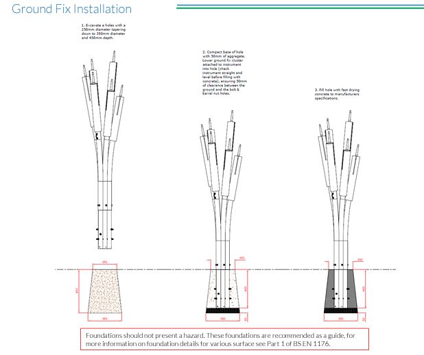 Ground Fix Installation: Requires digging a hole to install the instrument posts directly into the ground to be concreted in.