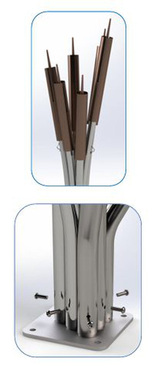 Nature's Elegance: Mimicking cattails, these chimes boast stainless-steel stems supporting light bronze aluminium chimes, creating a visually striking and recognizable presence.