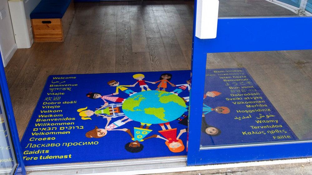 Welcome children from around the world with our Children of the World™ Welcome Carpet – a vibrant and educational addition to your school entrance or classroom. This 2x1.33m carpet features distinctive and brightly coloured designs, showcasing children from different cultures alongside the word "welcome" in 36 languages.