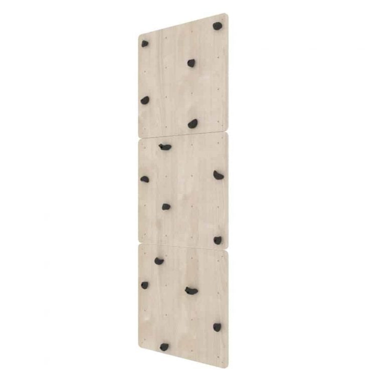 Plywood panels can be mounted in any combination, depending on individual needs and preferences. The boards are made of deciduous plywood – an extremely durable material, which is also extremely visually and aesthetically attractive, polished and smooth. Mounting of the climbing plates is convenient and simple – it is done with the use of dowels and screws, which should be mounted in the corners of the plate. This allows you to perfectly level out any surface irregularities and change the climbing handles without any difficulty. Climbing boards are painted with water-based paint or acrylic lacquer – completely safe for children. Climbing stones included in the set are made of resin – specially prepared, certified and thus completely safe for children. Climbing handles vary in shape and size so you can create a variety of mosaics on the climbing wall.