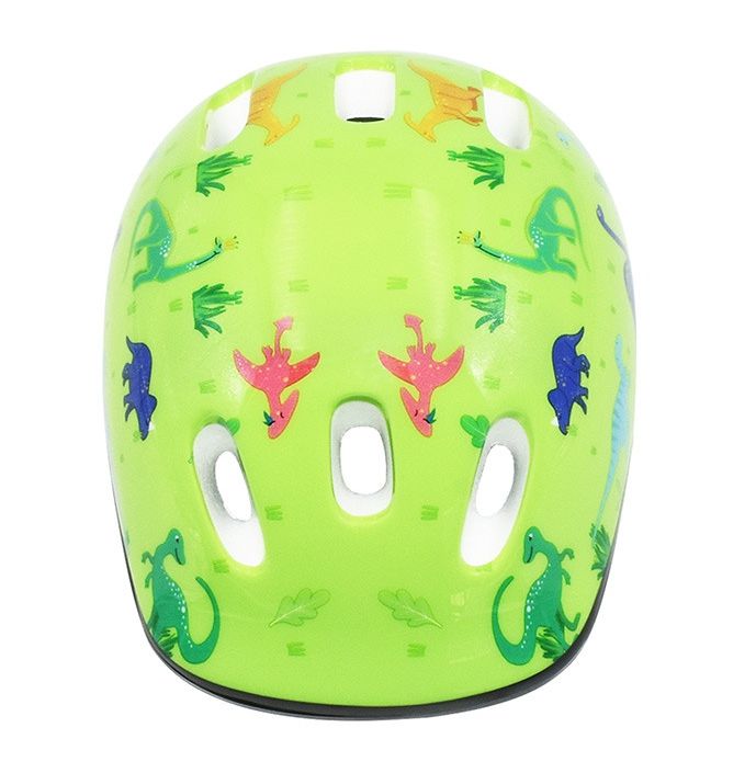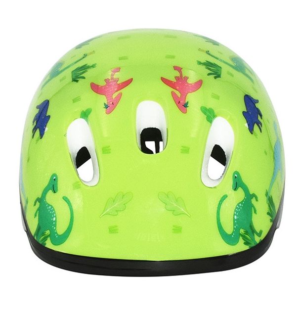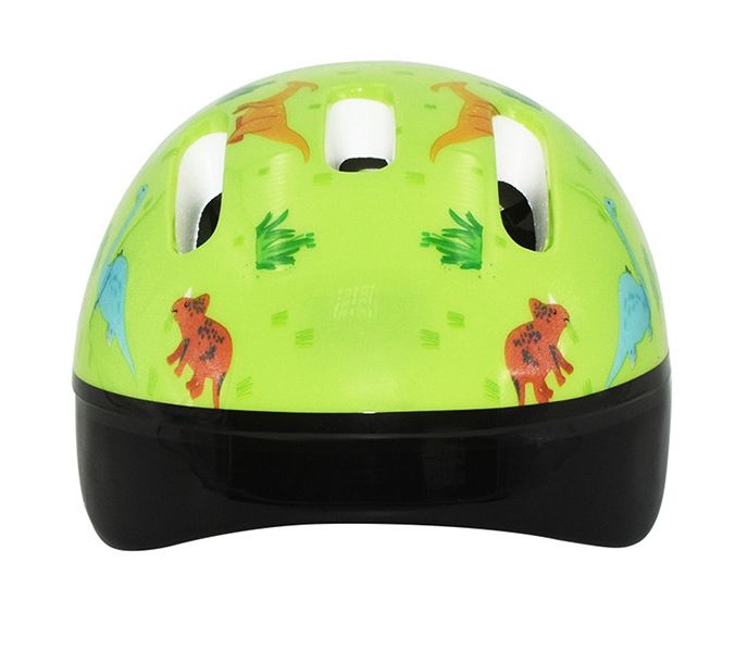 Dinosaur themed helmet and pad set to keep children safe as they playSafety helmet and pads for sport and outdoor toys, all with a colourful dinosaur design. The helmet is like a classic bike helmet, made from strong, yet lightweight materials to protect the rider's head from falls. Also included are two sets of pads to protect both knees and elbows, should the rider take a tumble at any time.