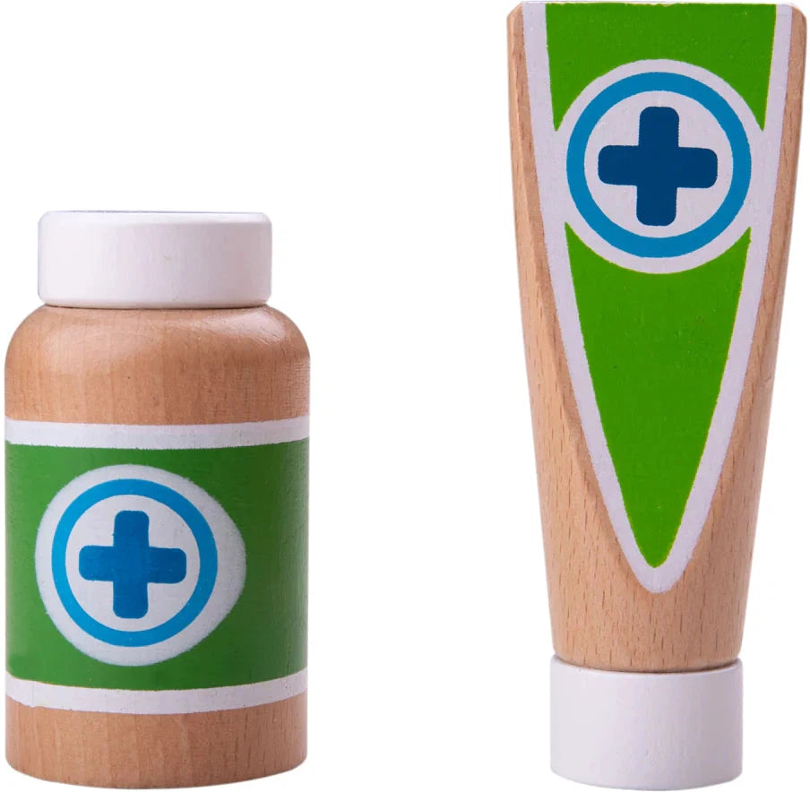 Once their patient has sat bravely through their check up, the doctor can reward them with an 'I was brave' sticker. This extensive wooden doctors kit includes a syringe, medicine gel, medicine, bottle, thermometer, stethoscope, otoscope, head bandage and 'I was brave' stickers, all supplied in a sturdy medicine bag with carry handle.