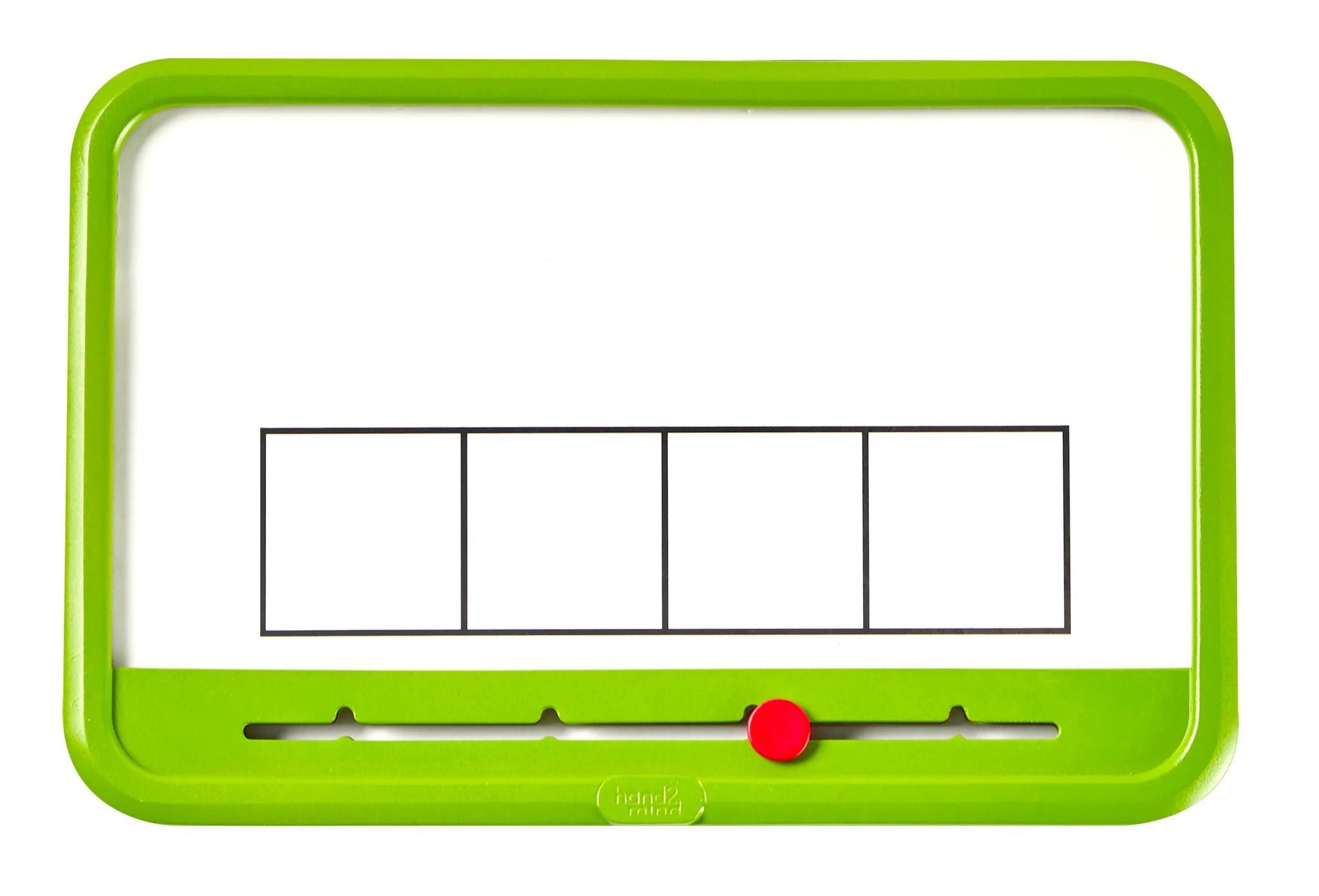 The Elkonin Box Phoneme Magnetic Dry-Erase Boards set includes 8 reusable phoneme frame whiteboards designed to help pupils develop phonemic awareness and phonics skills. These boards are perfect for teaching children to segment words into phonemes, identify beginning, middle, and ending sounds, blend phonemes to create words, and draw or write words. Each board features a built-in slider to provide a tactile way to support phoneme segmenting and blending, aiding in the reading of 2-, 3-, 4-, and 5-sound words.