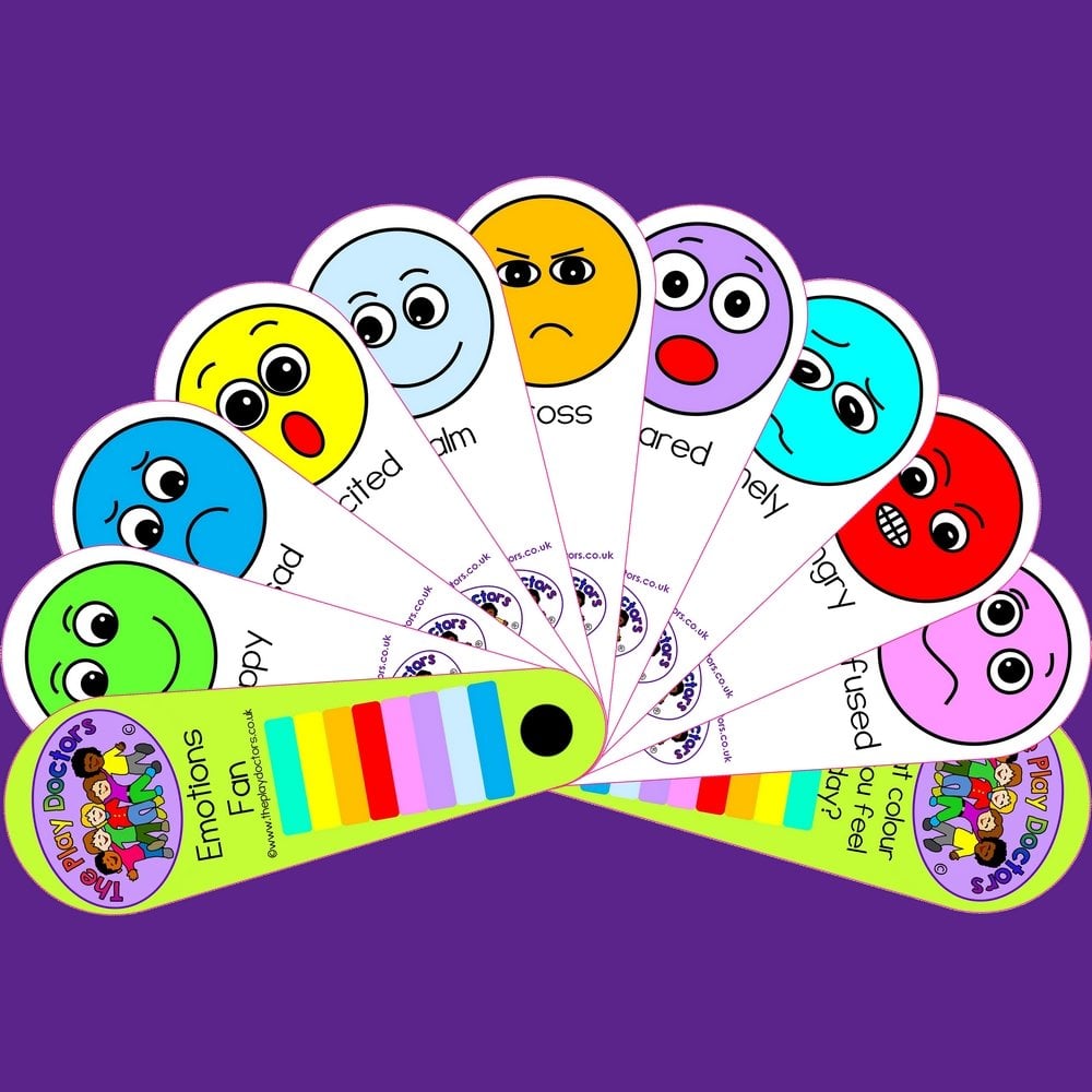 Used as a visual aid for children who have communication difficulties or with English as a Foreign language, this single 10 petal fan has colourful emotion faces representing a variety of emotions.