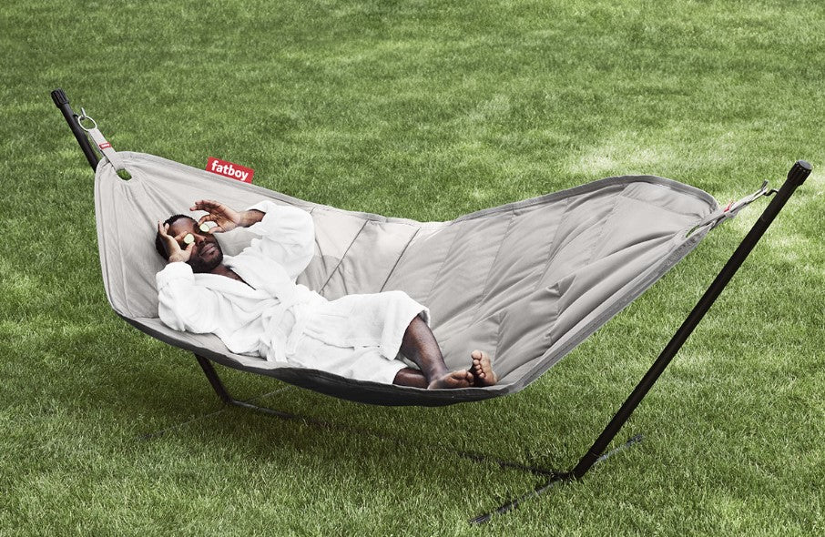 Chill out in total comfort with the Fatboy Headdemock hammock! With a 150kg capacity, it's big enough for one--or even two--to enjoy its spacious luxury. Set it up anywhere--no trees or ropes necessary--and take it down with ease when you're done. Thanks to its durable polyester fabric, this stylish hammock is designed to last, being water-repellent, dirt-repellent and UV-resistant. And to make your life even easier, it comes with its own handy matching carry bag! Stress free and super chill--that's the Headdemock experience!