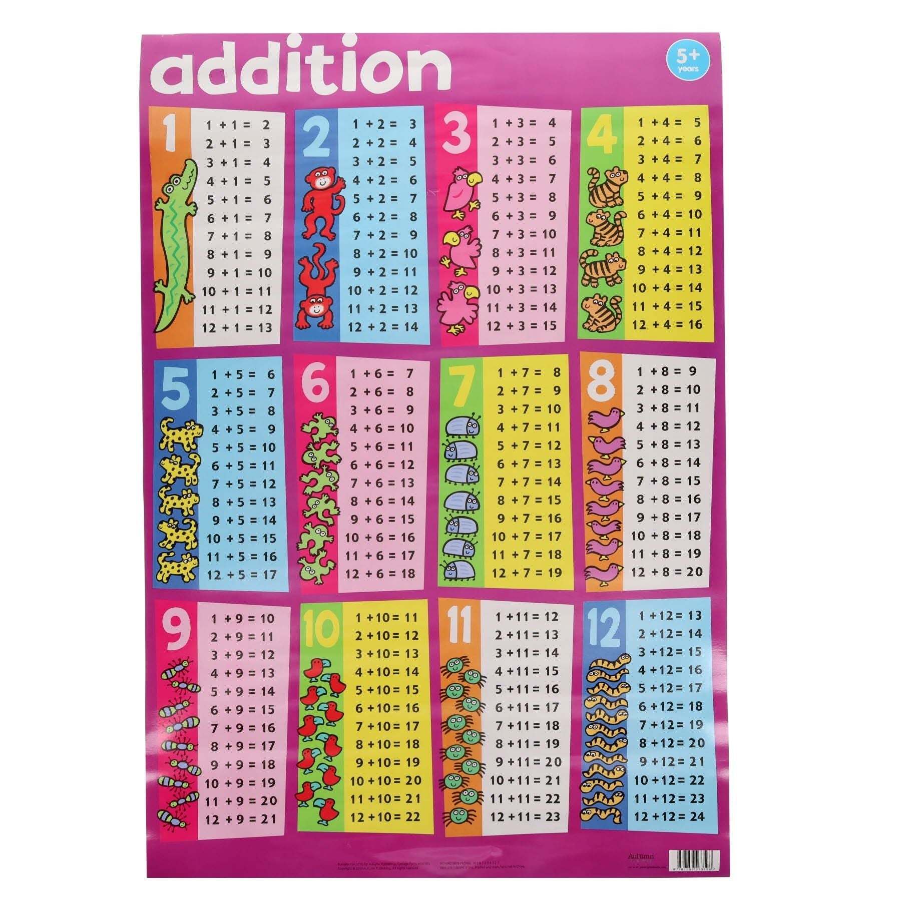 Three Vibrant Learning Wallcharts: Each chart is dedicated to a key mathematical concept—addition, times tables, and counting. The bright colours and lively pictures make these wallcharts not just educational but super fun.