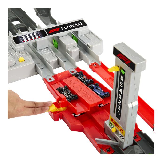 In Race Mode, the lap counter tracks each car as they zoom through the course, while the interactive DRS diverter lets racers overtake the leader in a dramatic twist. Switch to Infinite Mode for continuous racing with the three included F1® die-cast cars, manually adjusting diverters to keep the competition fierce. With Speed Snap Track connection points, kids can expand the circuit with additional Hot Wheels sets for even bigger adventures.