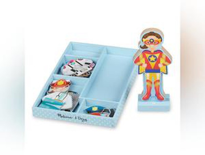 Whatever job Julia decides to take on, she can be dressed for success! Whether it's an astronaut, firefighter, doctor, superhero, artist, rock star, chef, or police officer, she is ready to tackle many tasks at a moment's notice. The set includes a magnetic wooden dress-up figure with a wooden stand and 24 magnetic clothing pieces to create eight occupational uniforms and outfits. The doll, stand, and pieces all store in a sturdy wooden tray. This unique dress-up doll helps kids three and older develop hand-eye coordination and fine motor, counting, and sorting skills, and encourages creative expression and imaginative play.FeaturesWooden magnetic doll to dress in eight different outfitsIncludes wooden doll, doll stand, 24 magnetic clothing pieces, storage traySend Julia off to work, dressed for successDevelops fine motor, counting, and sorting skills and encourages creative expression and imaginative playMakes a great gift for preschoolers, ages 3 to 5, for hands-on, screen-free play