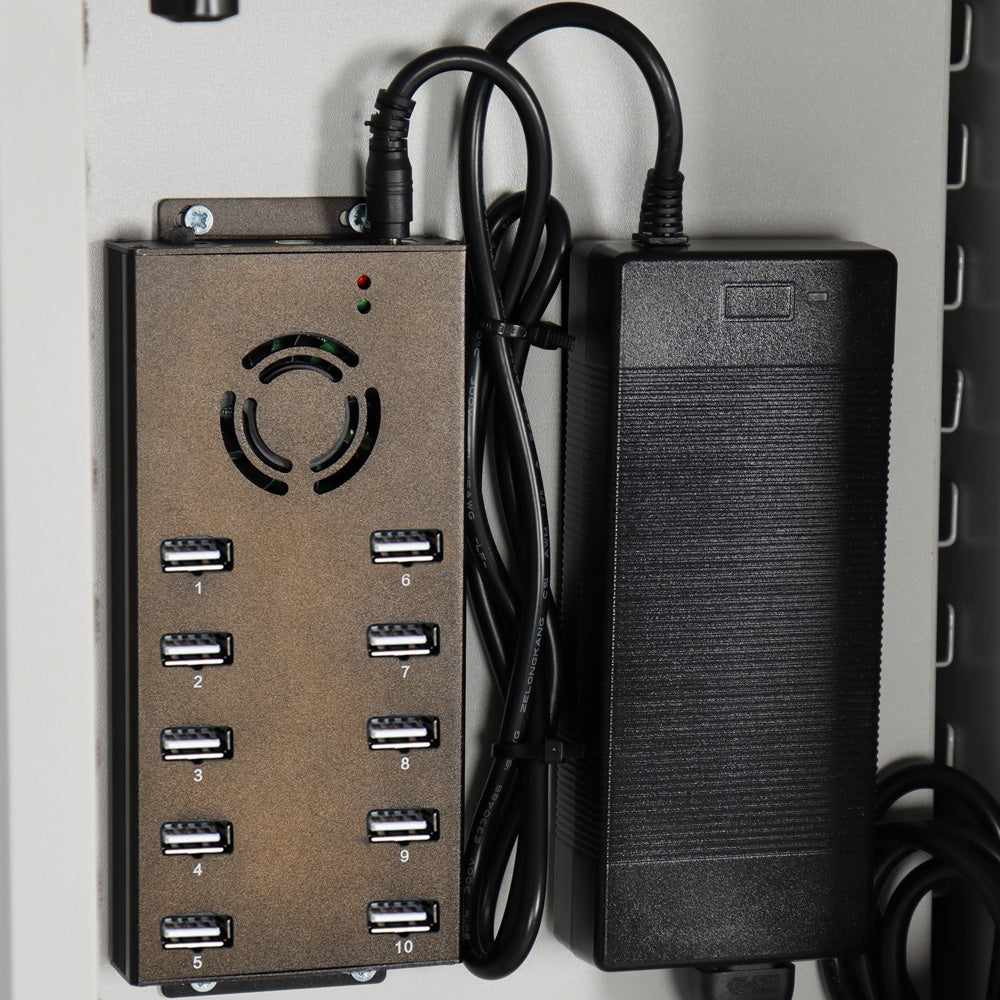 USB A & USB C Compatibility: Equipped with 3 x 10-port USB A hubs providing 10.5W per port, with optional additional USB C compatibility at 30W for rapid charging.