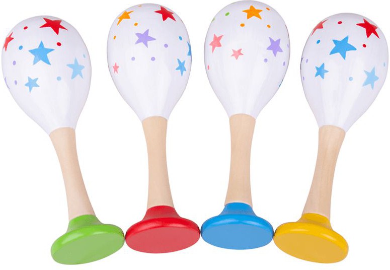 The colourful star print pattern on our maracas is engaging for children, and the maracas are perfectly sized for little hands to rattle and shake them. The chunky wooden handle is smooth and grippable.