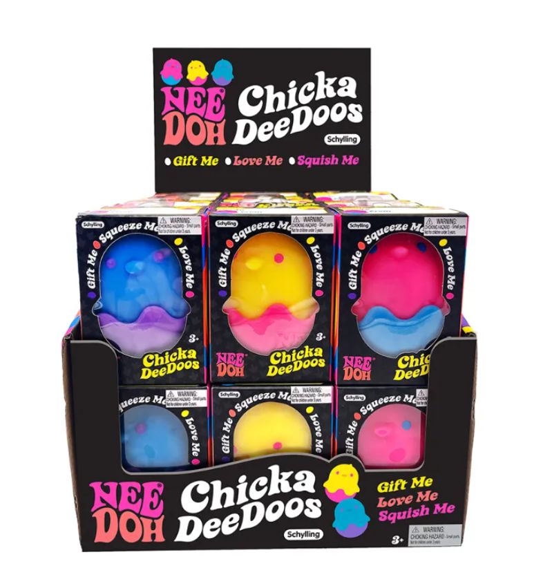 Just hatched! Squishably adorable NeeDoh baby chicks. Removable, squishable egg shell. Please note this item is assorted and colours may vary