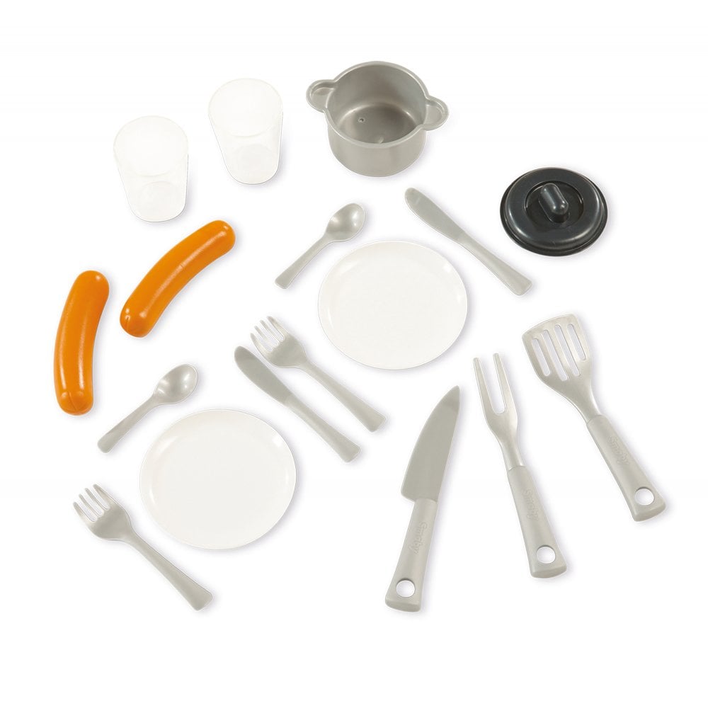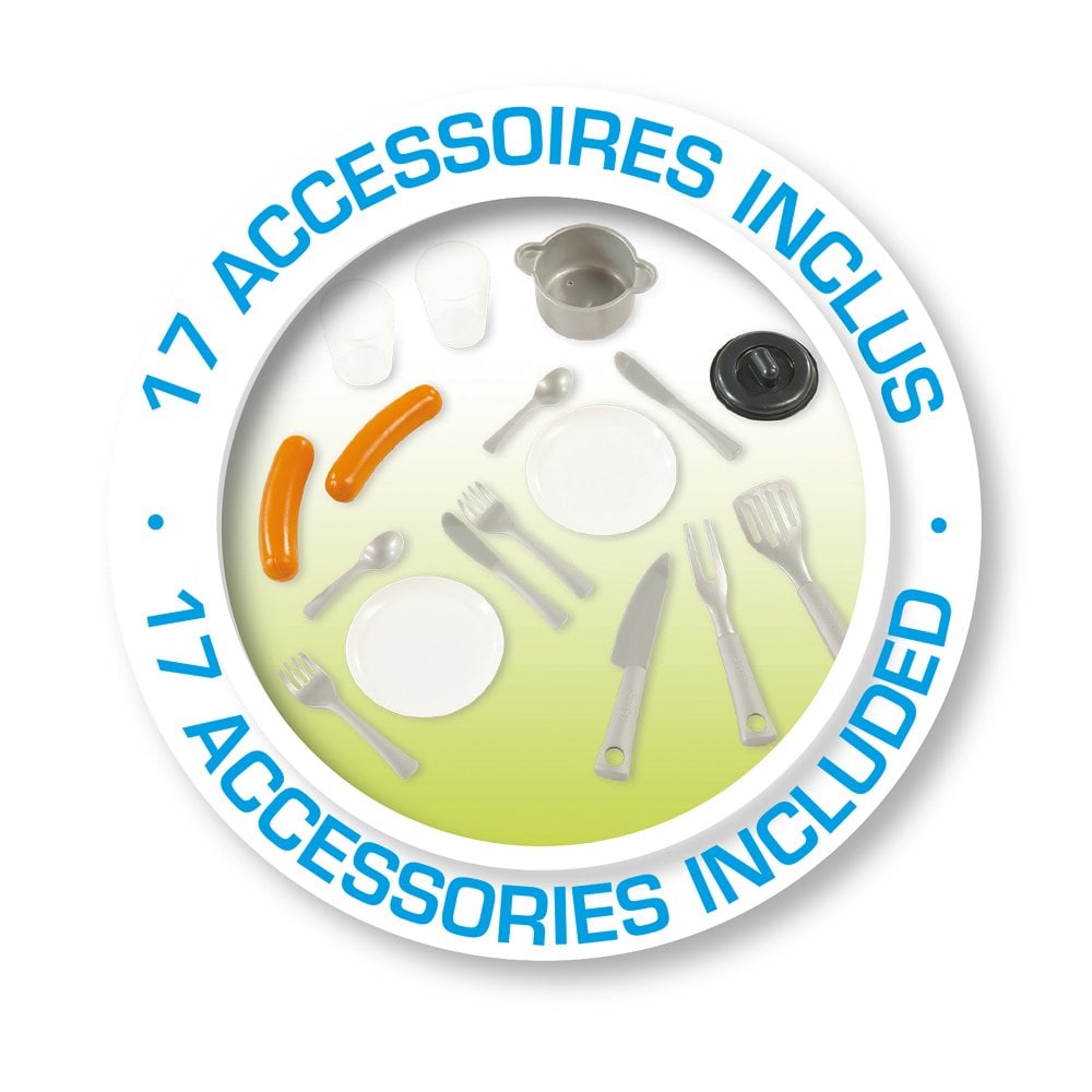 With its different game spaces, your children will eat in the picnic area, garden, and cook thanks to the "grill" and the different accessories included (glasses, plates, cutlery, stew pot, sausages...).