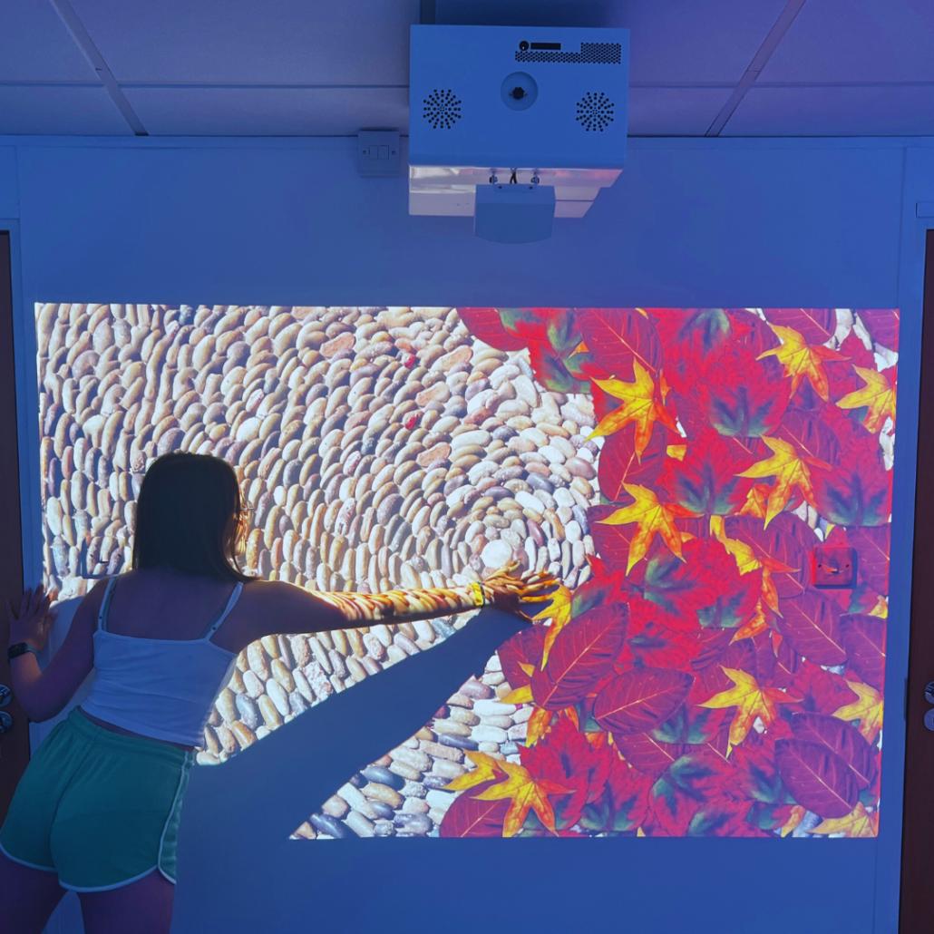 Experience the magic of interactive play with omiReflex: the innovative wall projection system that creates a captivating mirror image of the child while projecting dynamic moving images for them to interact with.