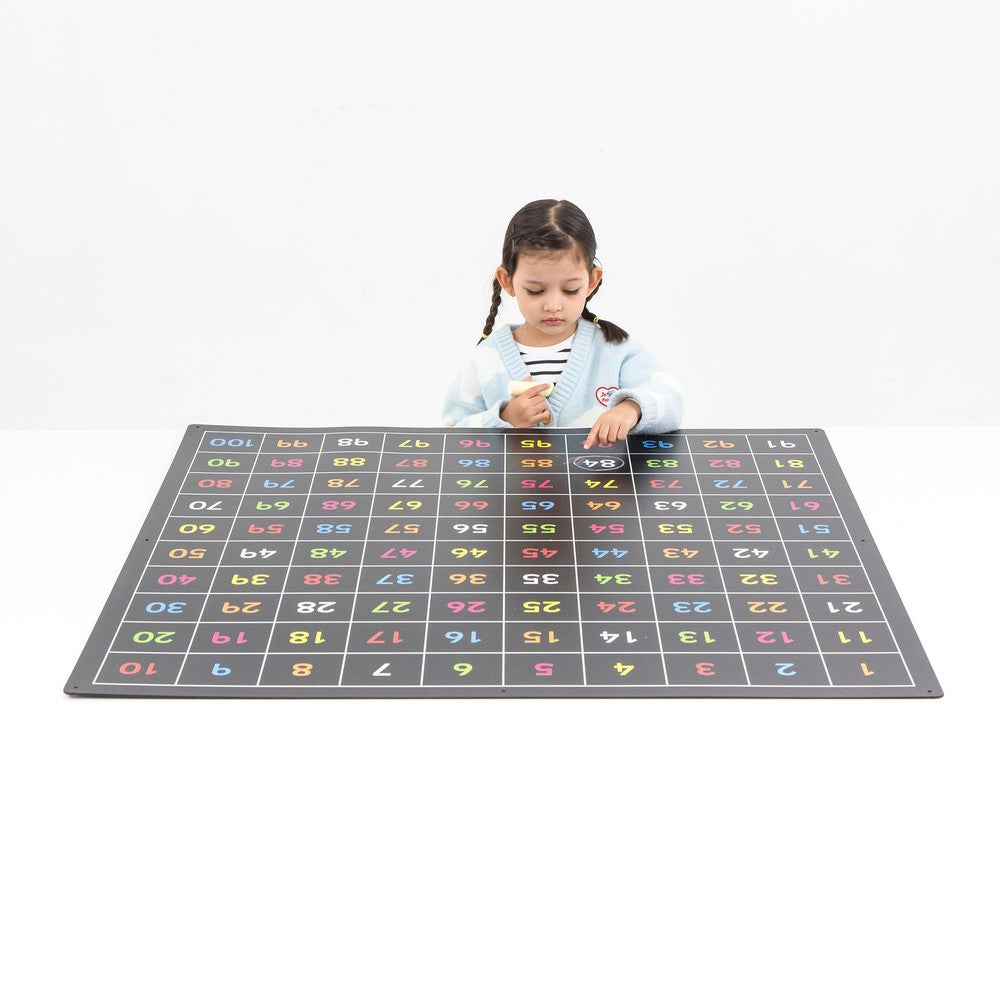 • Versatile Learning: With numbers 1-100 displayed in bright, inviting colours, one side of the chalkboard offers a visual feast that helps children grasp numerical concepts. Flip it over, and you’ve got a blank space ready for practising number writing, solving math puzzles, or creative drawing.