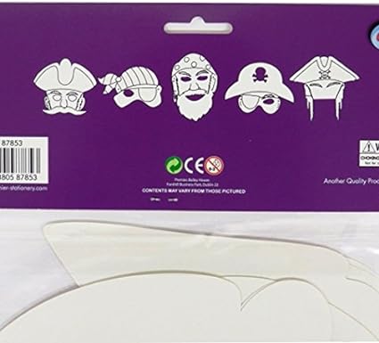 Ready to Colour: Let your imagination run wild with this pack of ready-to-colour pirate masks. Each mask is intricately detailed, illustrated, and cut out, waiting for your artistic touch.