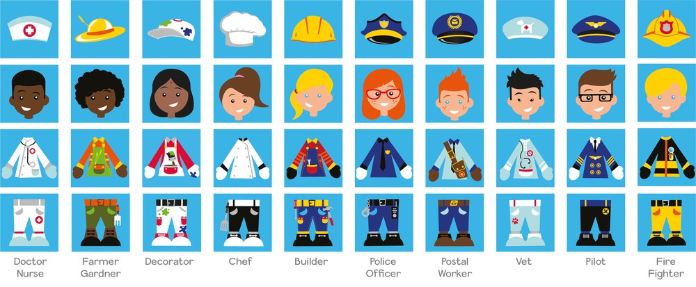 • Mix and match faces, uniforms, and hats for interactive learning
