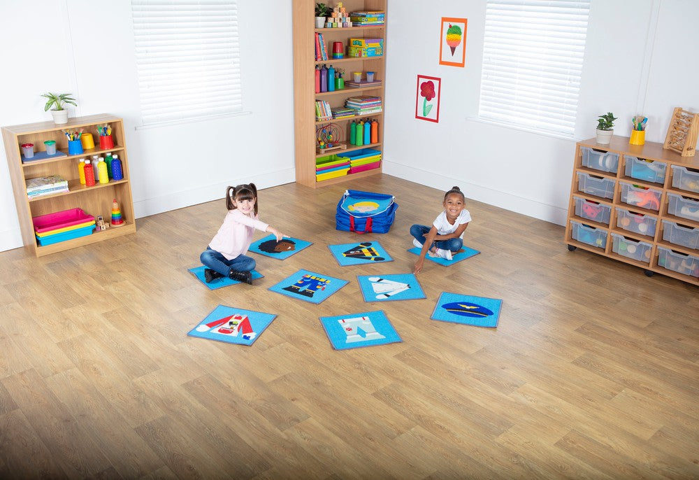• People Who Help Us - 40 Mini Placement Carpets with Holdall-Classroom Packs,Dropship,Kit For Kids,Mats,Mats & Rugs,Rugs,Sit Mats,Square,Wellbeing Furniture,World & Nature-Learning SPACE