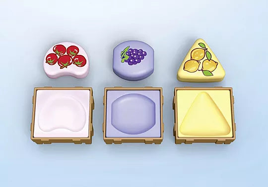 It's market day! Which vendor has the crispiest vegetables and the sweetest fruits? With this colourful set, your child can gain their first shopping experiences. Who delivers the groceries and how are they weighed? With the Organic Market Stall, your child can playfully recreate the shopping process and develop a sense for shapes, colours, and quantities. Does your child enjoy shopping? Then this set is perfect for you. At the Organic Market Stand, there's plenty for little market visitors to explore. The forklift delivers fruits and vegetables. Quickly, the crates are unloaded, and the sales begin. How many bananas are printed on the shape block? Who can turn the scale to the correct number? And how many fruits fit in the shopping cart? Who can sort all the fruits and vegetables into the right crate? After the successful shopping trip, there's still one question left: Which fruit or vegetable tastes best?