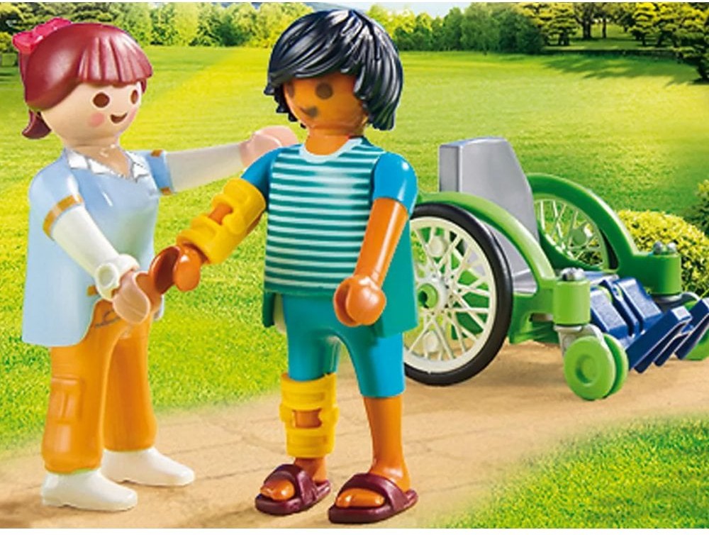 Give your child the gift of inclusive play with the Playmobil® Patient in Wheelchair set. This City Life toy features a patient in a wheelchair accompanied by a nurse, providing your child with endless opportunities for imaginative and empathetic play.