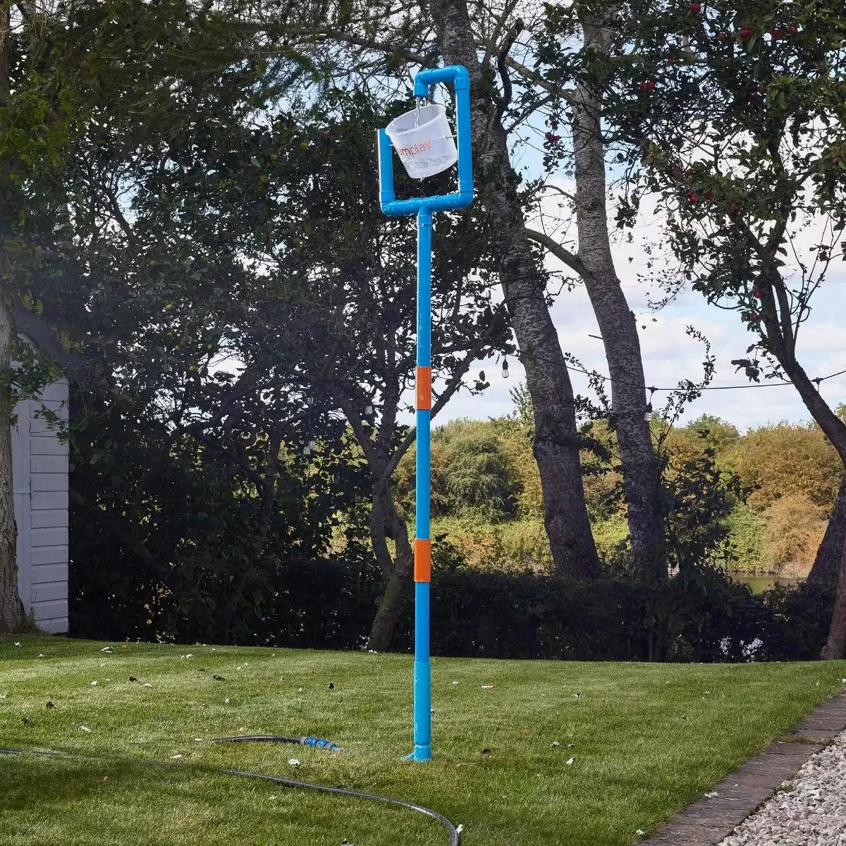 Convenient to put away after play, with easy pack down and storage. Hosepipe connector included and ground spike for secure anchoring into soft ground.