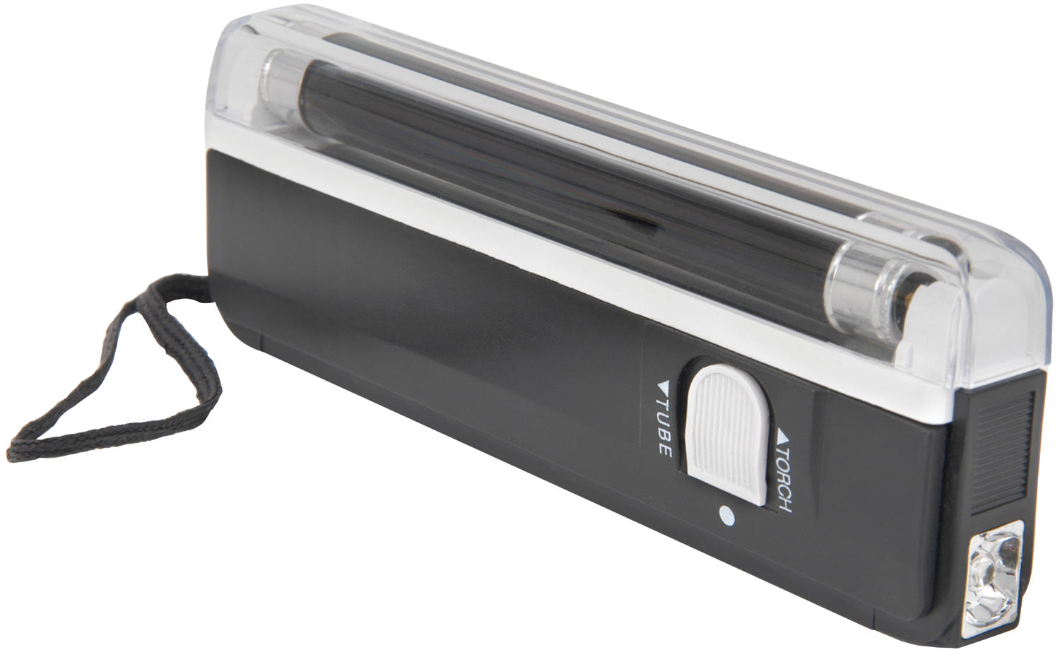 A compact, pocket sized black light tube with a built-in torch. Ideal for checking bank notes, stamps and identification documents.