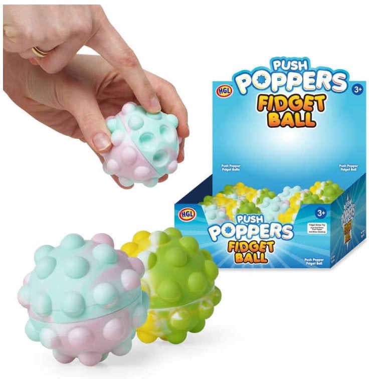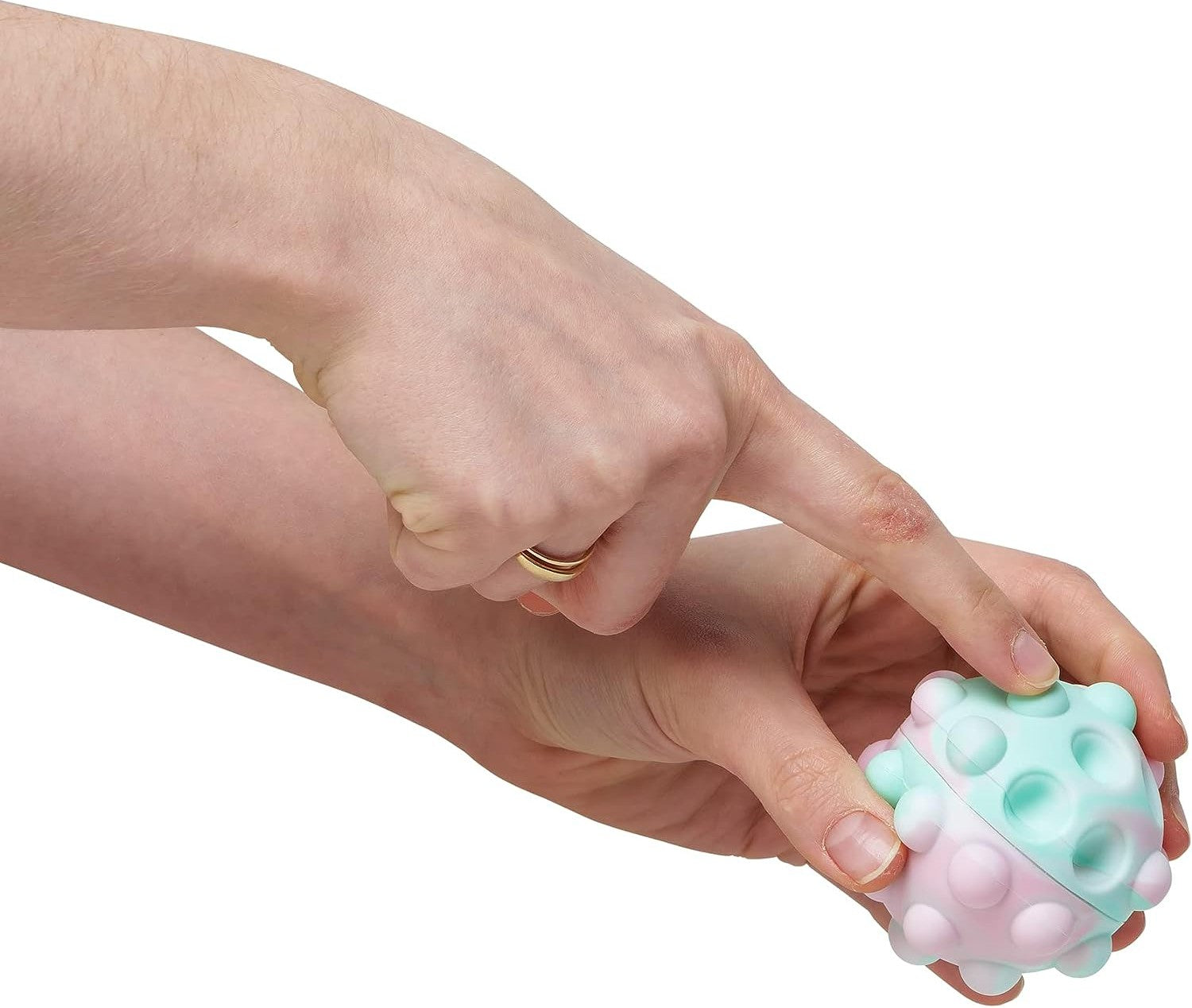 Ball shaped fidget toy covered in push popper bubbles. Press each bobble in and it makes an incredibly satisfying pop sound. Once depressed, give the ball a squeeze and it will push each popper back out, ensuring they're ready to be popped again.