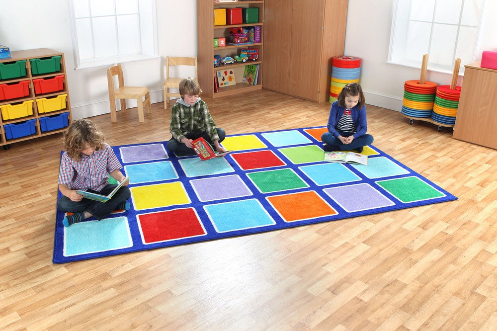 Rainbow™ Rectangle Placement Squares Carpet, a vibrant 3x2m addition to enhance your learning space.