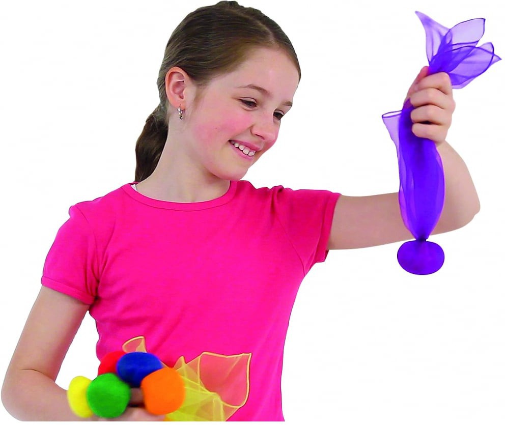 Scarfball Set of 6—a delightful fusion of scarves and cotton balls that adds a playful twist to learning and fun activities for young ones! These vibrant scarfballs are designed to engage and assist children in honing their catching skills while providing a colourful and interactive experience.