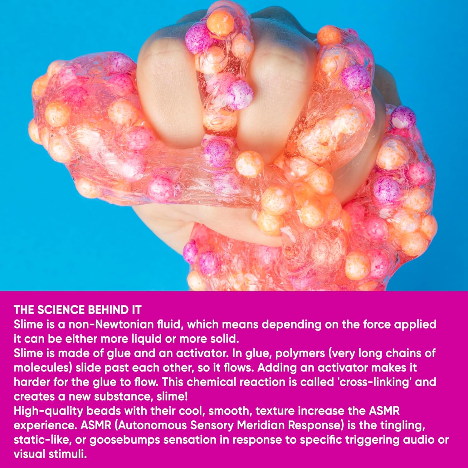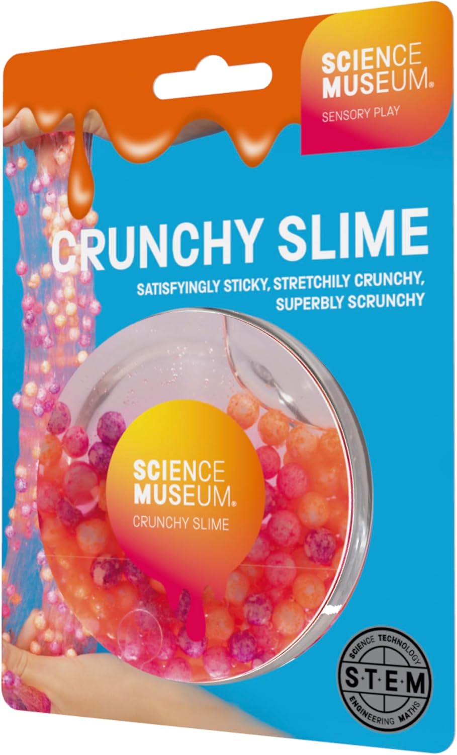 Experience the ultimate sensory crunch with Science Museum Crunchy Slime! Packed with smooth slushie beads, this slime delivers satisfying crackles and pops for ASMR fans and sensory seekers. Its slightly sticky texture keeps beads firmly in place for less mess and maximum crunch.