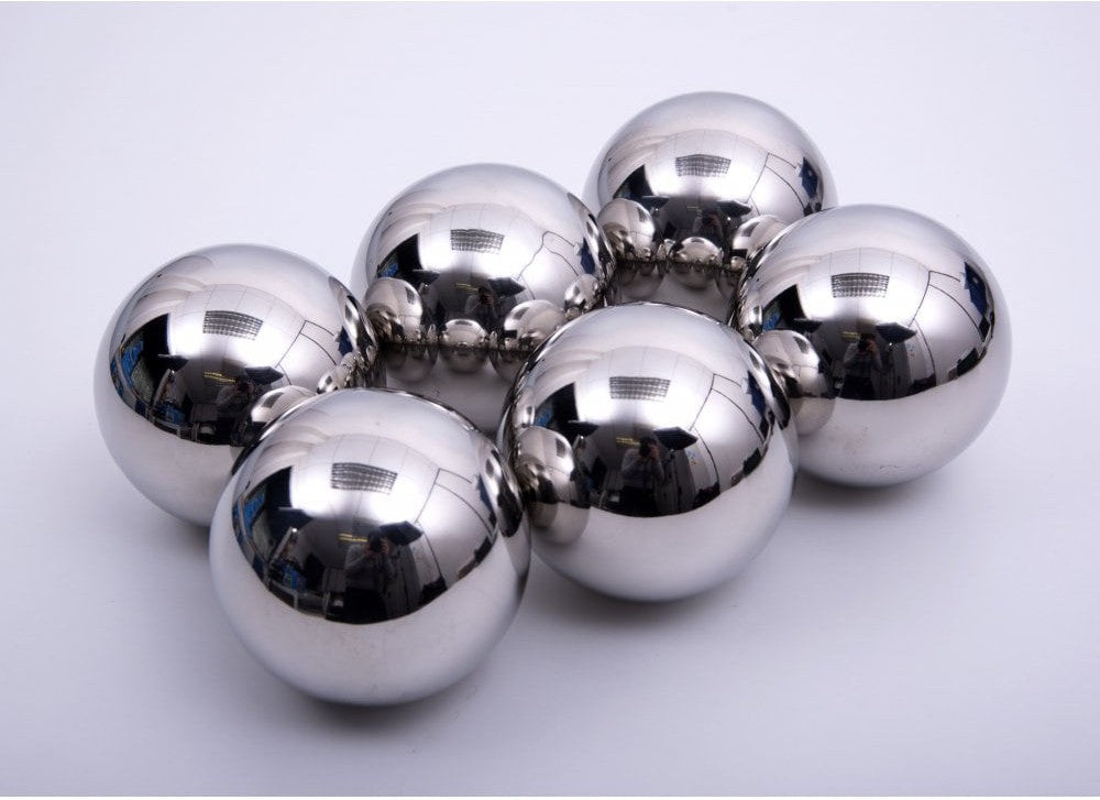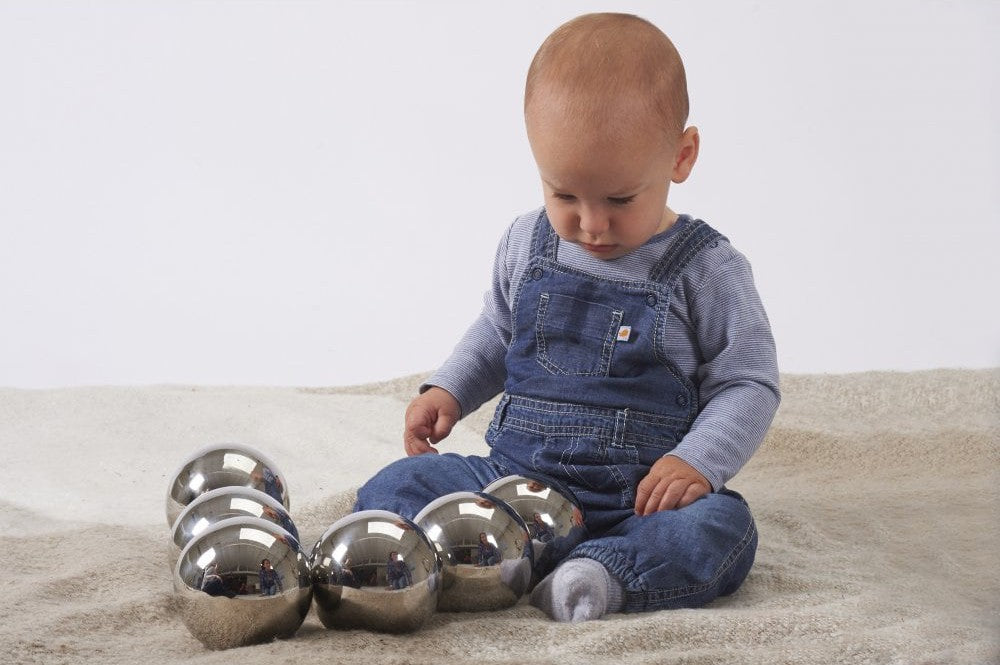 Built tough from stainless steel, these 6 shimmering mirror balls appear indistinguishable, but each has its own personality. When rolled, some may wobble; two are quiet, but one veers off course. Give them a twist, spin, or shake and you'll feel different contents and hear an array of shaker and rattle sounds.