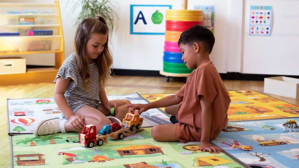 Promotes Physical Development: Encouraging wheeled toy play, these carpets promote physical development and enhance moving and handling skills. The light and durable Tuf-Loop™ pile makes them easy to roll and move, catering to small play areas.