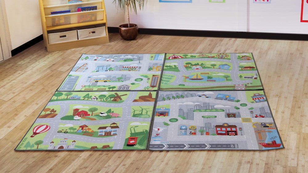 Explore endless possibilities with our Small World Road Map Indoor/Outdoor Carpets – available in two captivating sets of four 1x1m carpets, perfect for small world play both indoors and outdoors.