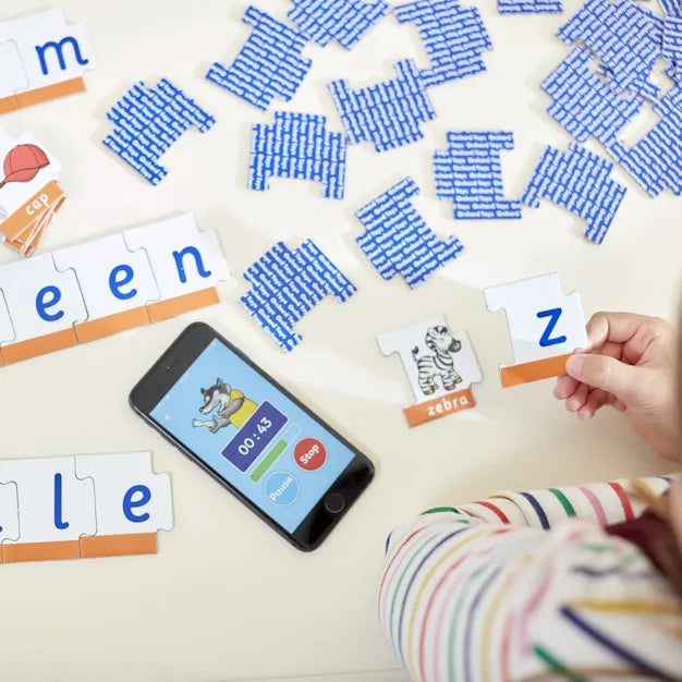 Speed Spelling is a fast-paced literacy game for children age 5-8! This fun, educational game with unique and engaging gameplay is sure to make spelling practice fun.Players take turns to spell words before the timer runs out - if the timer runs out midway through spelling a word they have to pass it on to the next player to complete! The game is filled with anticipation and can change quickly - children will enjoy racing against time and pinching words from other players! For younger children the game can be played without the timer to allow them to concentrate on each word.Speed Spelling can be used to develop letter recognition skills before developing into a fun game. Once the game is complete children can be encourage to talk about the words in front of them.Speed Spelling is an exciting redesign of Pass the Word game.