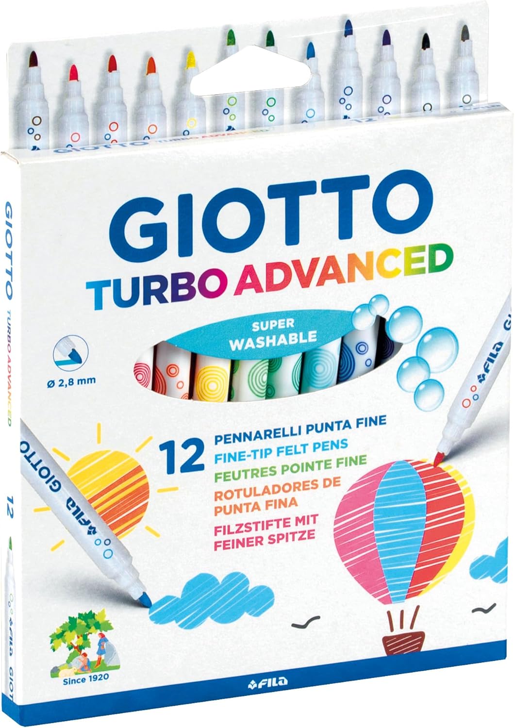 GIOTTO Turbo Advanced Super Washable Felt Tip Fibre Pens – Vibrant Colours, Super Washable!