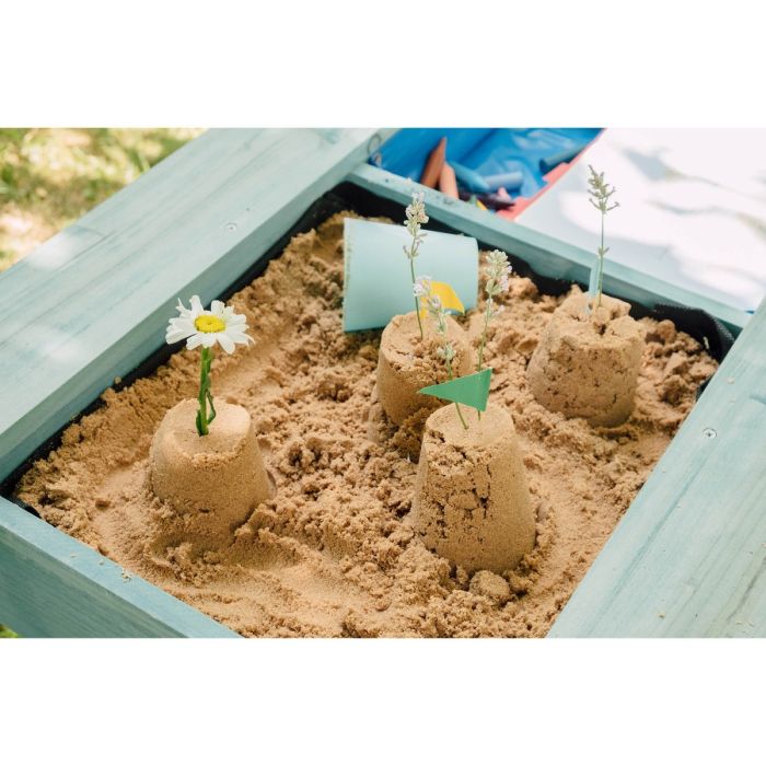 Safety Precautions: Always cover the sandpit when not in use Regularly check sand for impurities and sharp objects. Use washed play sand suitable for use in children’s sandpits. Adult supervision recommended at all times. Adult assembly required. Minimum user age 18 months. Outdoor use only. Only for domestic use.