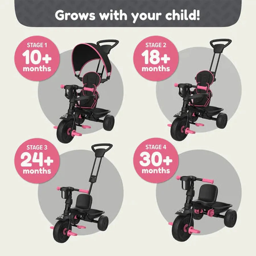 • 4-in-1 Growing Fun: Designed for 4 key stages of your child's development – from guided strolling at 10 months to independent riding at 30+ months.