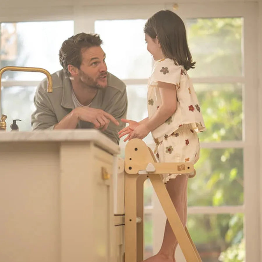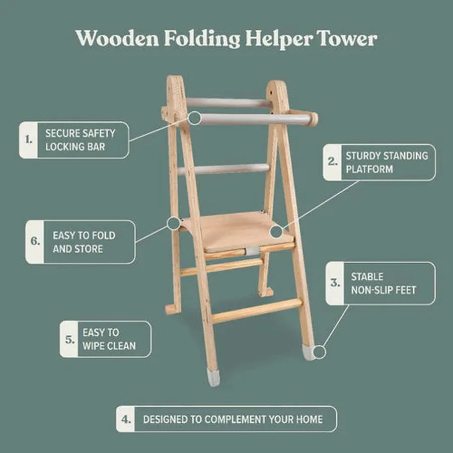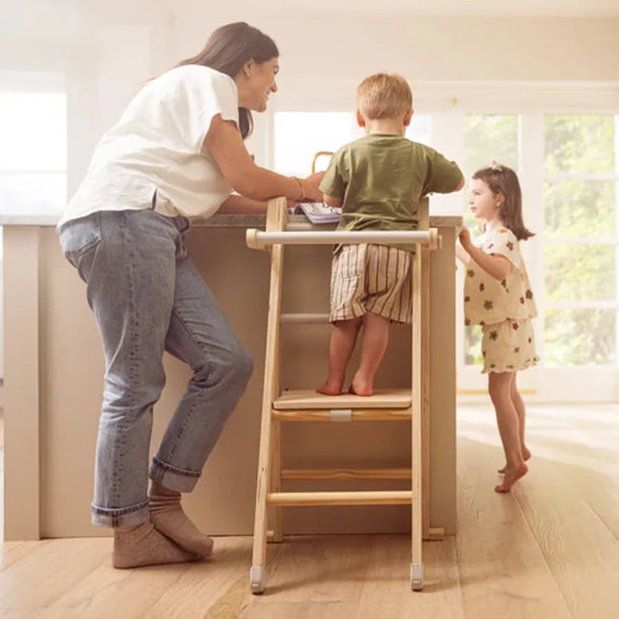 With a deep, secure platform, a thick safety bar, and non-slip feet, this tower keeps little ones safe and steady while they explore their world. And when it’s not in use? Simply fold it away in seconds! Perfect for small spaces, this stylish and compact helper tower blends beautifully into any home.