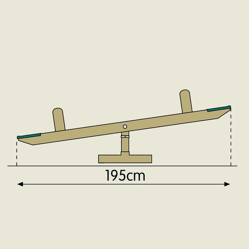 The TP Forest Wooden Seesaw is guaranteed to put a spin on playtime! With a full 360° circles and comfy moulded plastic seats, kids will be bouncing and spinning in delight. Packed with sustainability, this new and improved seesaw is pre-drilled for easy assembly and pressure-treated to stay colourful and carefree. Play circle: 160cm. Max recommended weight per seat 35kg. Age 3yrs+. It's time to see-saw!