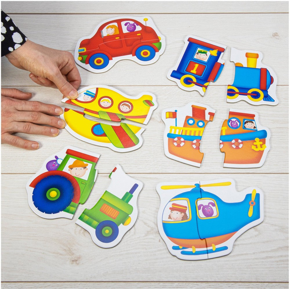 Brighten playtime with Transport Baby Puzzles – a delightful set of six two‑piece jigsaws featuring friendly vehicles.