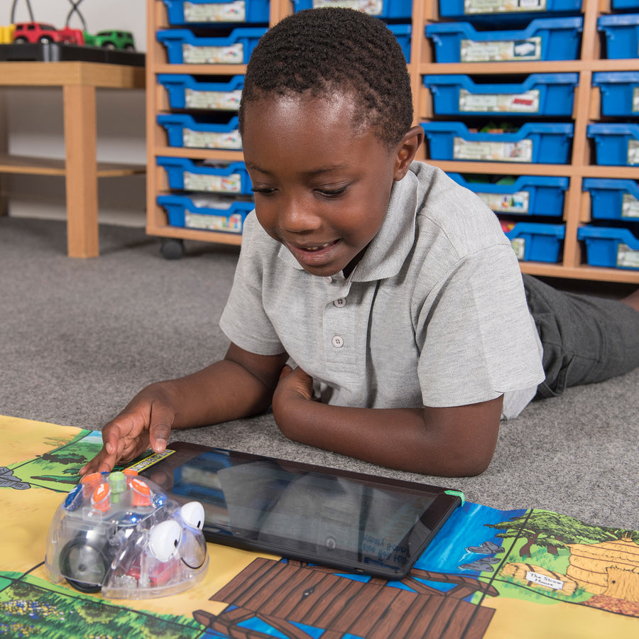 Its transparent shell lets children peek inside to see how it works, sparking curiosity and discussion around technology. Blue-Bot can remember up to 200 steps and interact with other Bee-Bots and Blue-Bots, making it ideal for collaborative learning. Rechargeable and eco-friendly, it’s a smart choice for sustainable tech education.