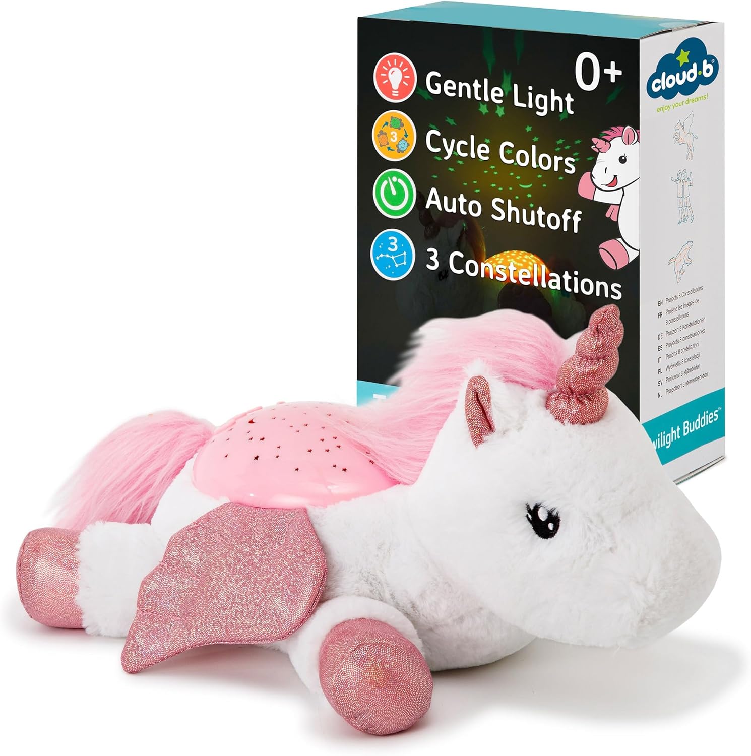 Transform bedtime into a magical starry adventure with the Twilight Buddies® Unicorn with Wings – a soft, glowing companion that helps ease nighttime worries and create a calming sleep environment. This plush unicorn projects a gentle starry night sky onto walls and ceilings, complete with the moon and three hidden constellations, making it perfect for sensory rooms, bedrooms or quiet corners.