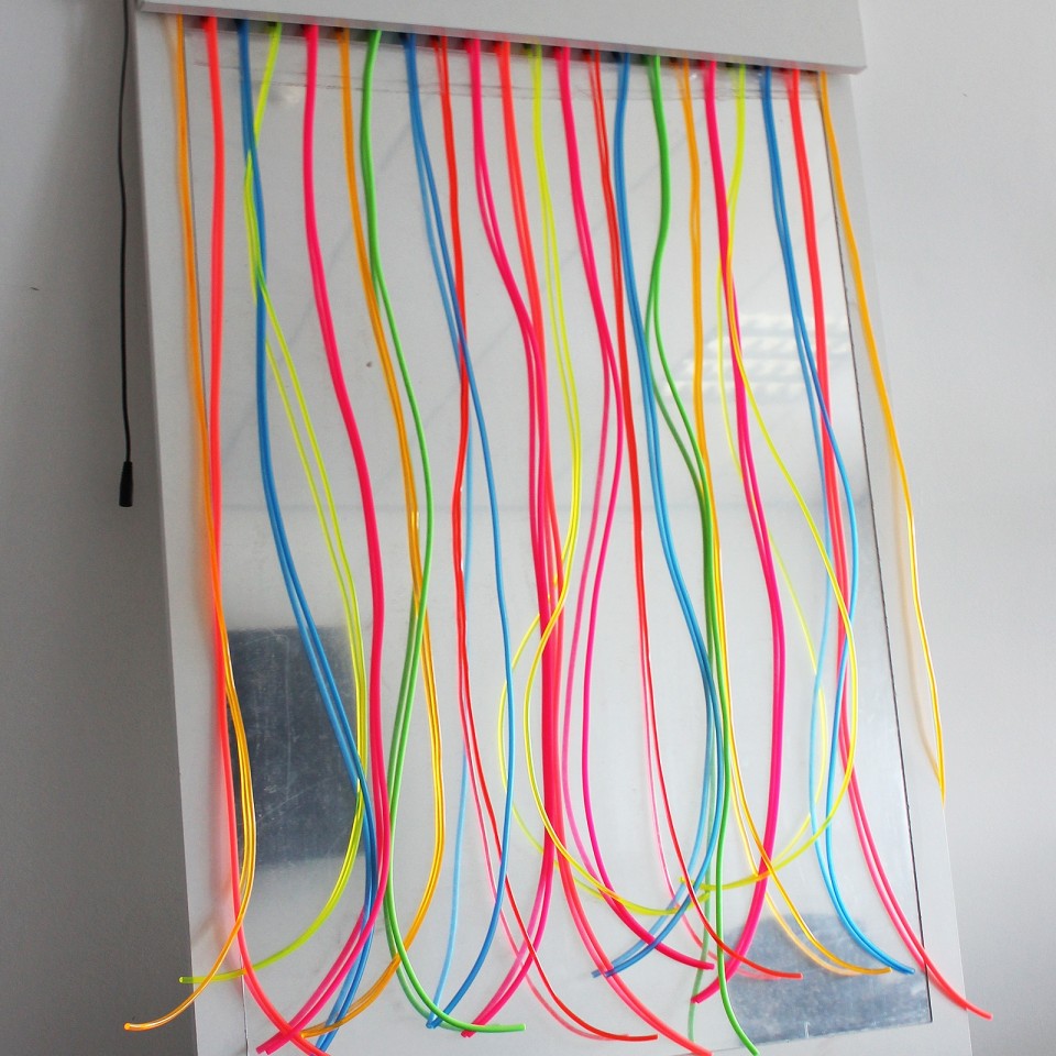Create a fascinating sensory environment with light and colour to aid visual stimulation and perception with this fantastic UV mirror. Standing at one metre tall, the top of the mirror is lit with 39 UV LEDs and decorated with lengths of vivid neon cord that fluoresce brightly under the UV light for a unique visual experience. Combining reflection and self discovery with UV light and glow in the dark colour, this captivating mirror enhances your sensory environment encouraging interactive touch, self expression and visual stimulation as an endless source of wonder.Mains operated, this large mirror has wall mounting points and with 150cm lead, you have flexibility for placement.